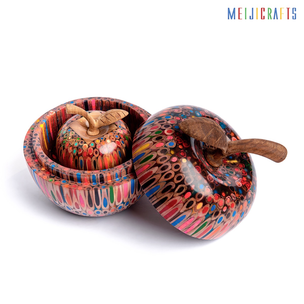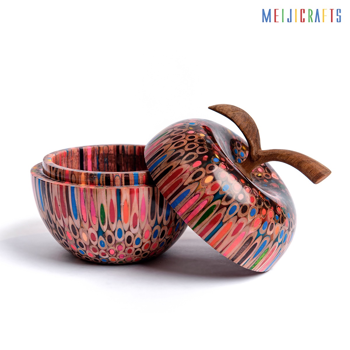 A surprising creation, in which a combination of a small container and a colorful wooden apple, become one of the must-have items in the stocks of Meijicrafts. A safe and exciting place to hide surprises for the beloved person, toned by 540 pencils.
